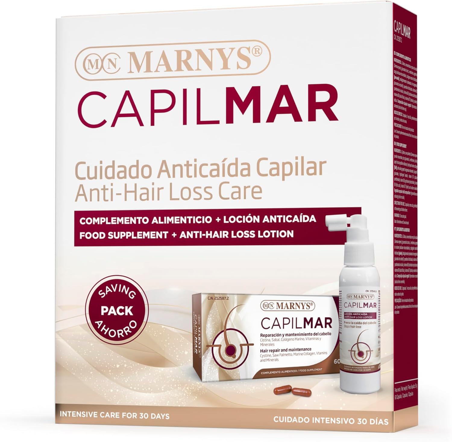 Pack CAPILMAR Anticaída Marnys – 60 Cápsulas + Loción 100 ml – Frena la Caída – Protección Capilar – Recupera Firmeza y Brillo – Cuidado Intensivo 30 Días
