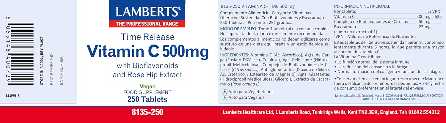 Lamberts Vitamin C Sustained Release 500mg - 250 Tablets