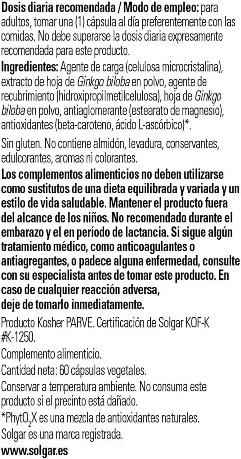 Solgar | Ginkgo Biloba Leaf Extract | 60 Vegetable Capsules, Brown, 100 g