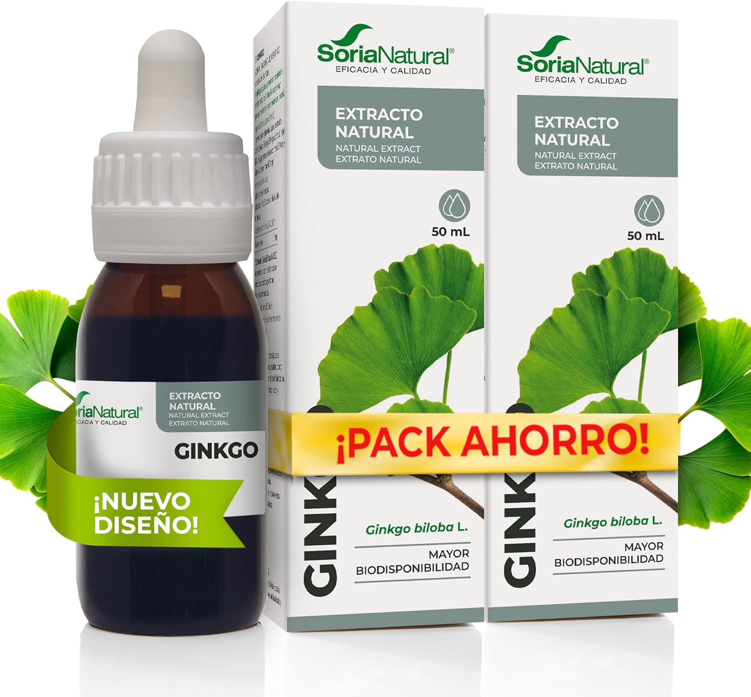 Soria Natural - BILOBA S. XXI GINKGO Extract - Food Supplement - 50 ml - Activates Your Circulation - Promotes Mental Activity - Antioxidant (PACK2)