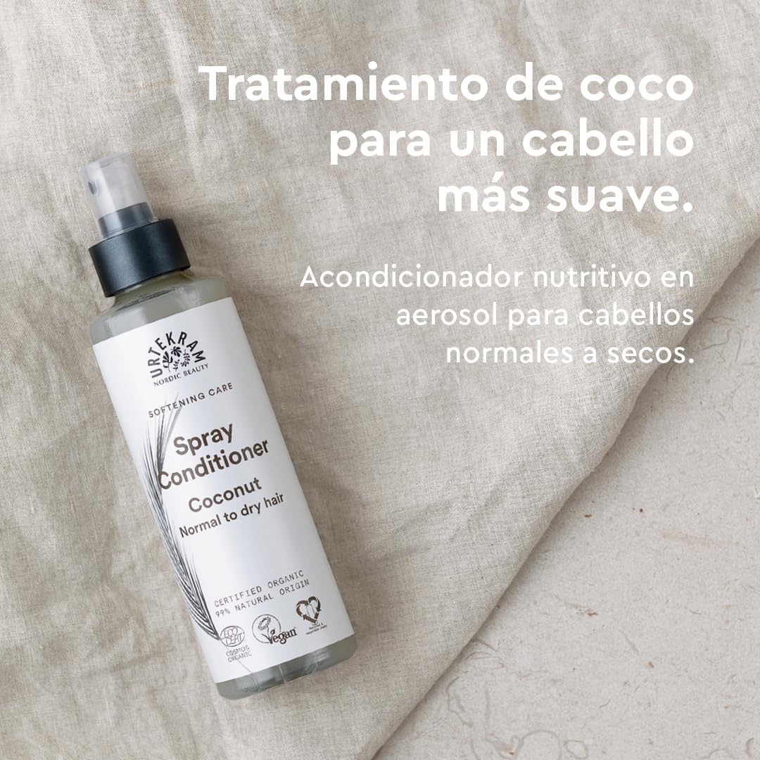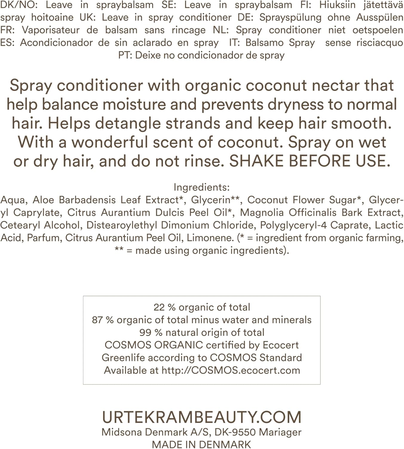 Urtekram Coconut Rinse Free Spray Conditioner with Organic Coconut Nectar, Natural Hydration and Frizz Control for Normal, Vegan and Natural Hair, 250 ml